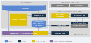 Note: this image is a generic representation of the AI engineering processes as we have observed them in the wild. John and van der Leek suggest that for AI that is mostly used for computer vision, data preparation can require relatively less code and effort than depicted here.