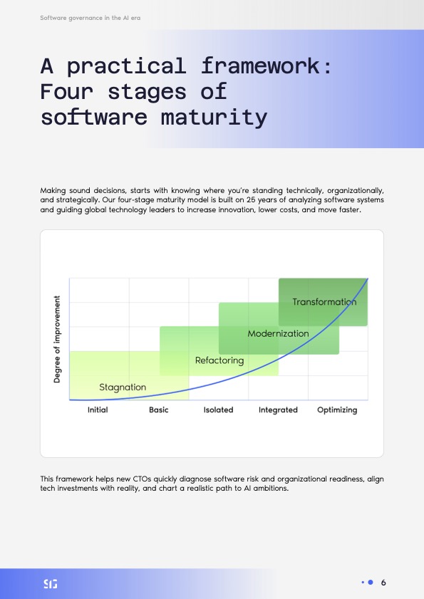 For CTOs and CIOs who need a clear view of their software maturity to lead AI initiatives with confidence — leaders focused on reducing risk, strengthening governance, and turning modernization into measurable business impact.