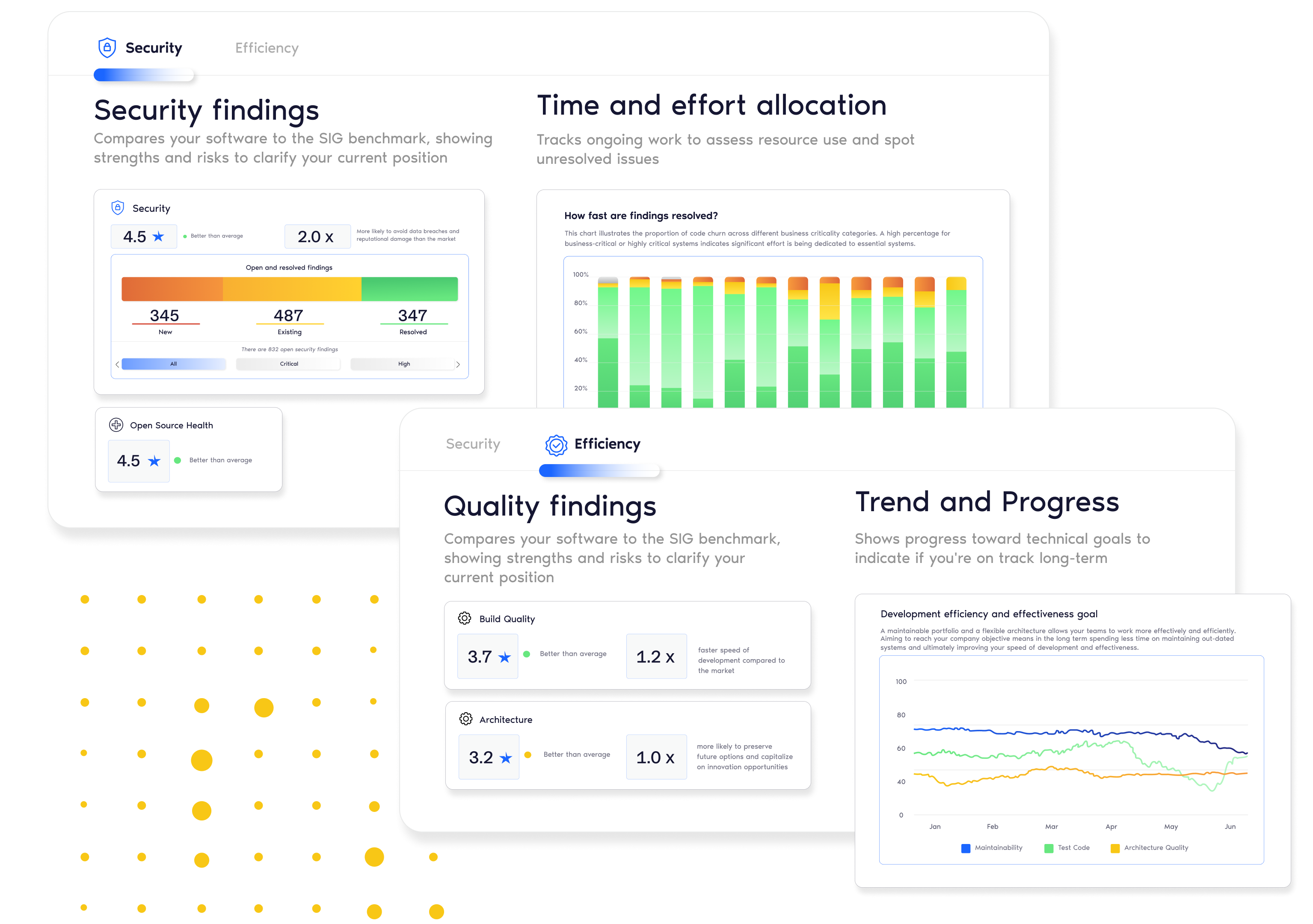Sigrid identifies weak spots and bottlenecks in your code, architecture, and third-party systems.